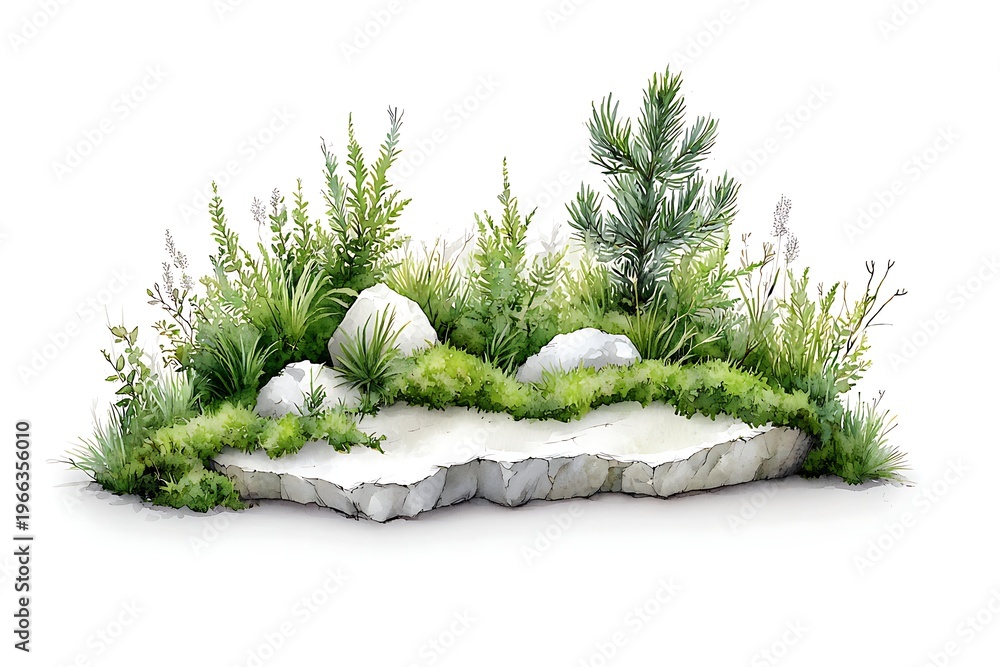 Lush Greenery With Rocks And Flowers On An Wallpaper Mural - Decorly Solutions | Decorly Solutions