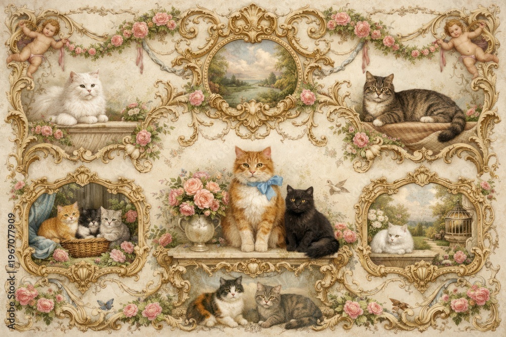 Victorian Cats In Ornate Frames Wallpaper Mural - Decorly Solutions | Decorly Solutions