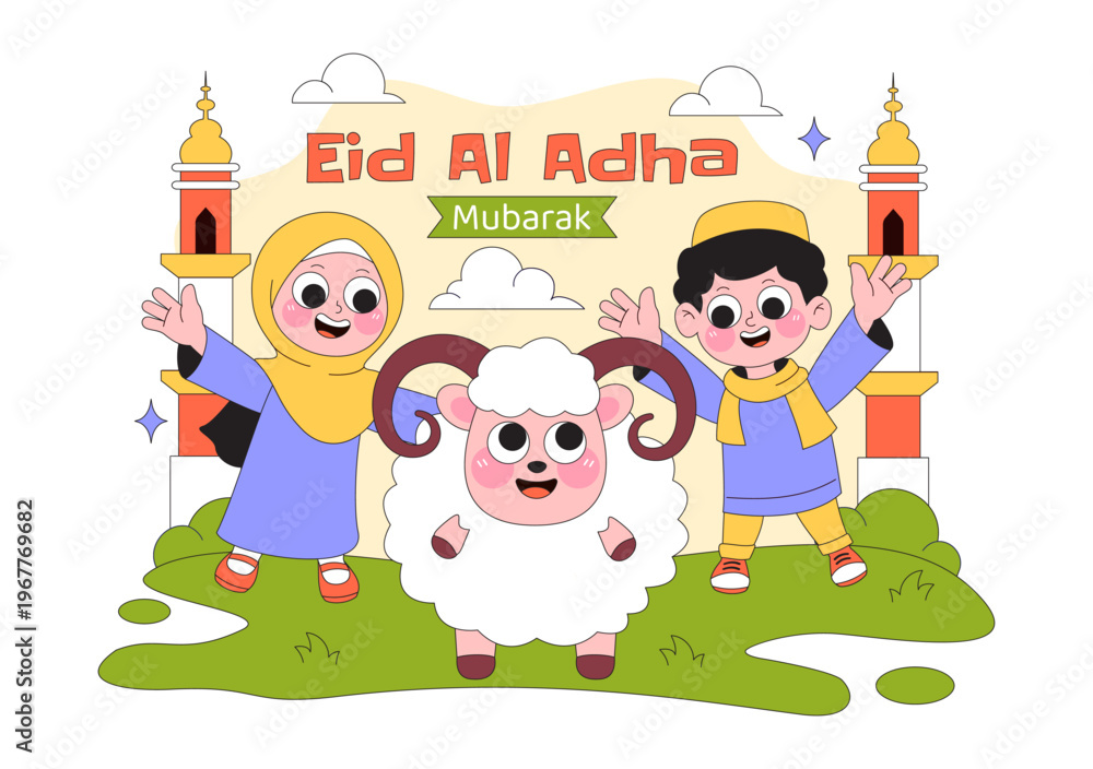 Eid Al Adha Vector Illustration Featuring Muslim Children Mo Wallpaper