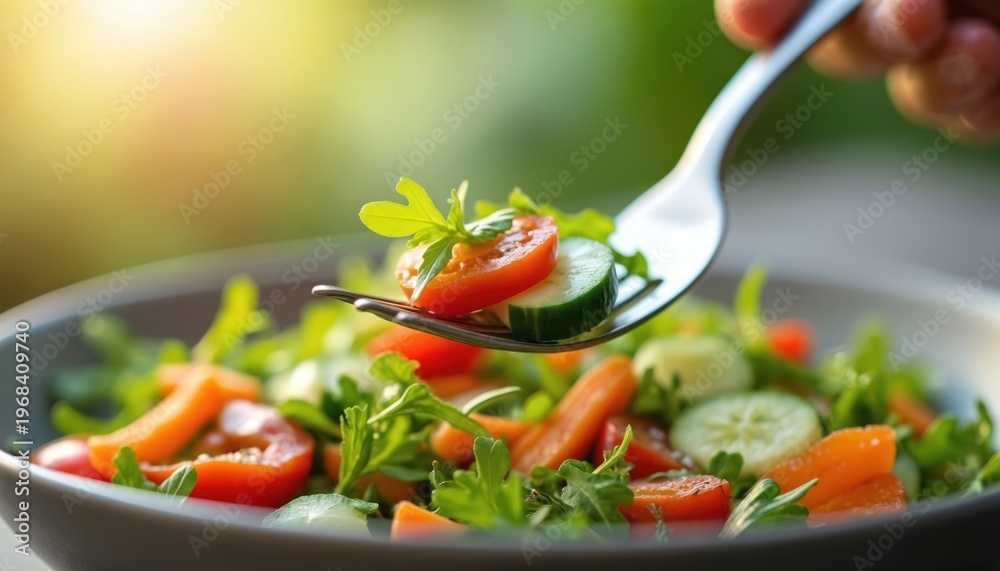 Fork Picks Up Fresh Salad With Tomatoes Cucumber Wallpaper Mural - Decorly Solutions | Decorly Solutions