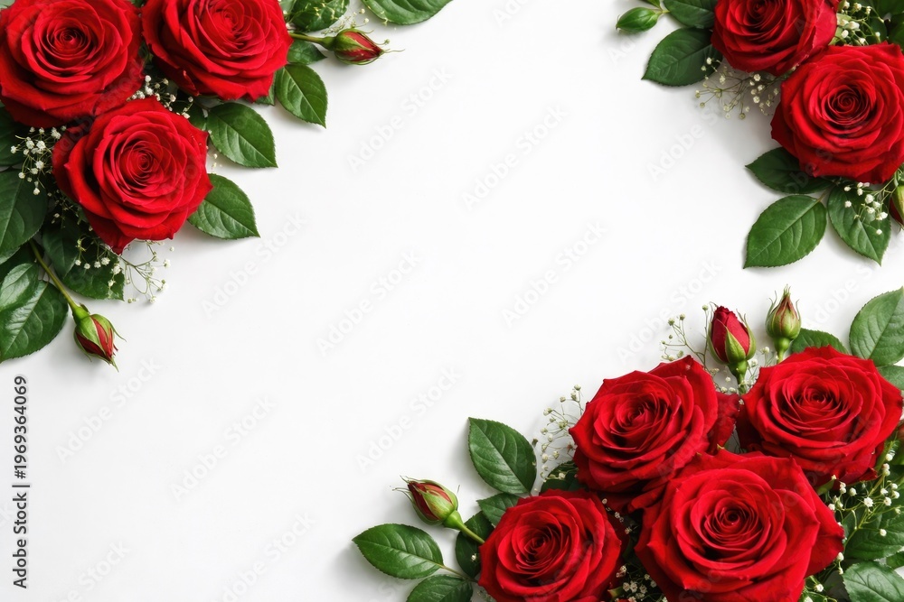 Elegant Arrangement Of Red Roses And Green Leaves Wallpaper Mural - Decorly Solutions | Decorly Solutions