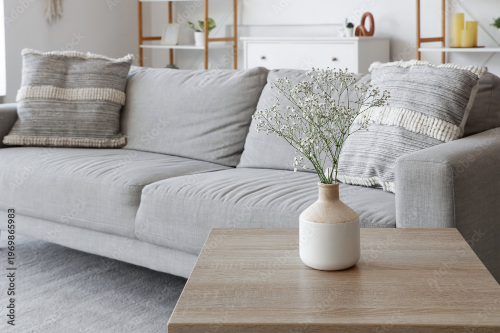 Vase With Flowers On Table Near Sofa In Wallpaper Mural - Decorly Solutions | Decorly Solutions