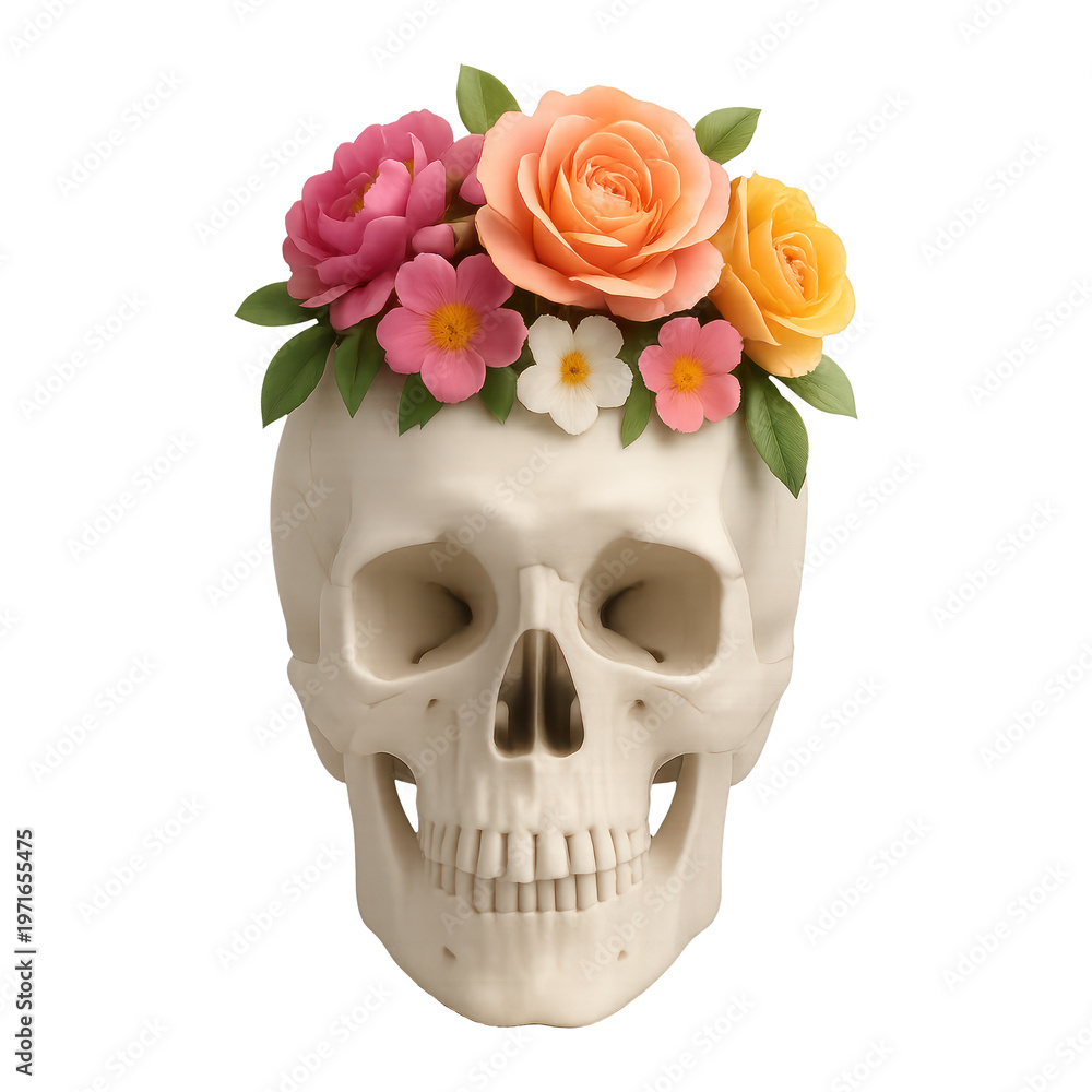 Png Skull Adorned With Vibrant Flowers Wallpaper Mural - Decorly Solutions | Decorly Solutions