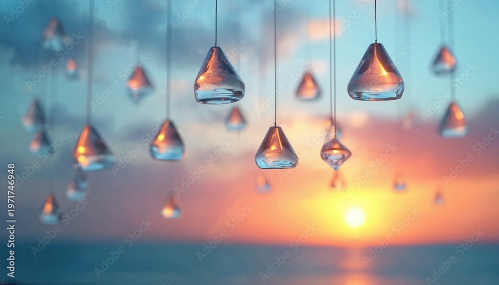 Glass Tear Drops Hang Mid Air With Sunset Wallpaper Mural - Decorly Solutions | Decorly Solutions
