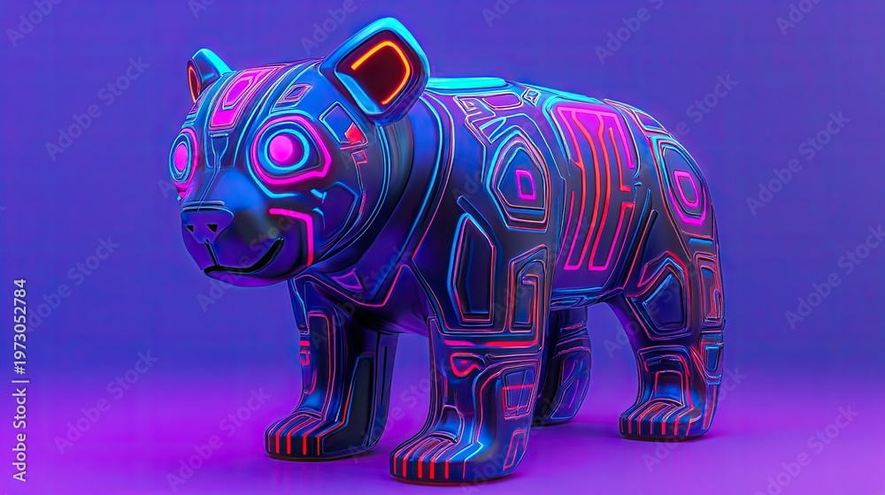 Neon Cyberpunk Bear: Futuristic Animal Art with Vibrant Glow Wallpaper