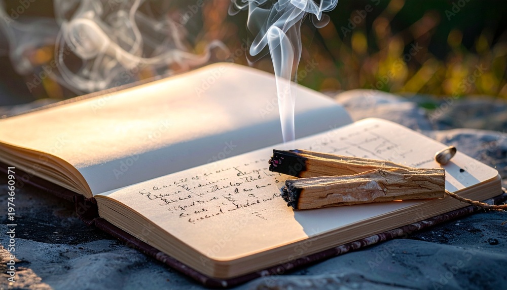Wellness Breathwork Setup with Guided Journal and Palo Santo Wallpaper