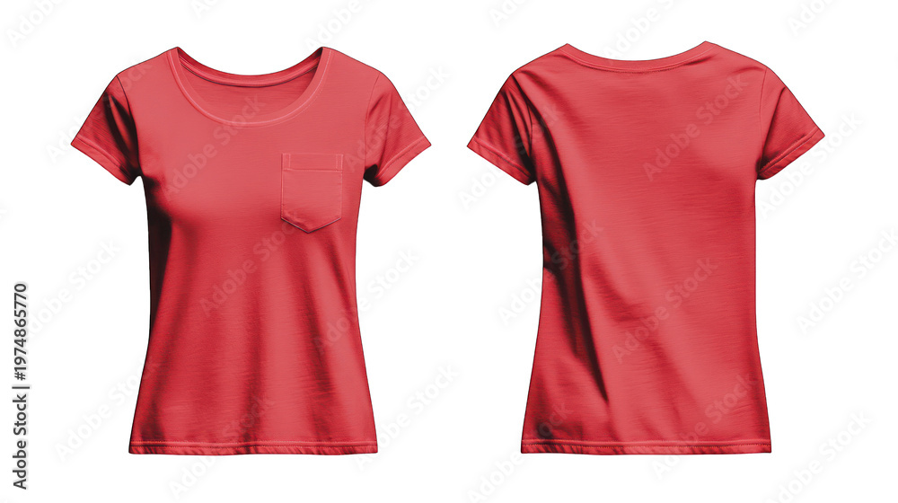 Red t shirt mock up showcasing front and back views on white background, perfect for design presentations and apparel marketing