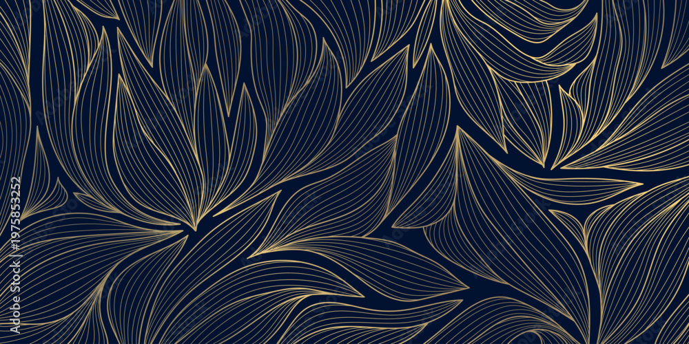 Luxury Gold Floral Line Pattern Elegant Leaves And Wallpaper Mural - Decorly Solutions | Decorly Solutions
