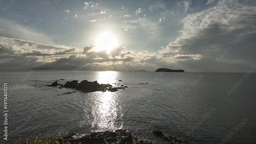 the sun is sinking into the sea. possible to accelerate the image stream. vertical video for social media.