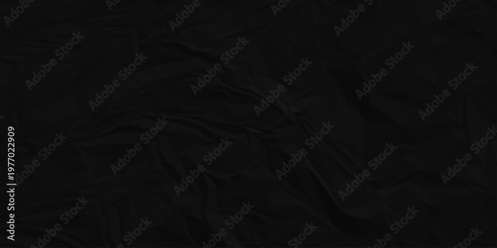 Dark Black facbric paper backdrop crumpled texture. dark black textured crumpled black paper background. panorama black paper texture background, crumpled pattern.