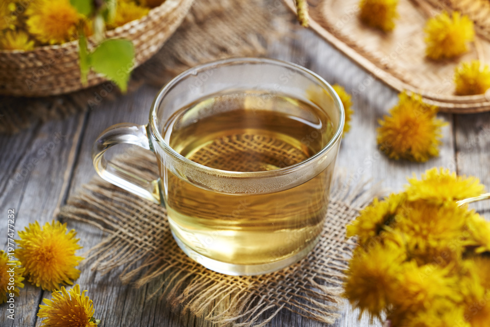 A Cup Of Herbal Tea With Fresh Dandelion Wallpaper Mural - Decorly Solutions | Decorly Solutions