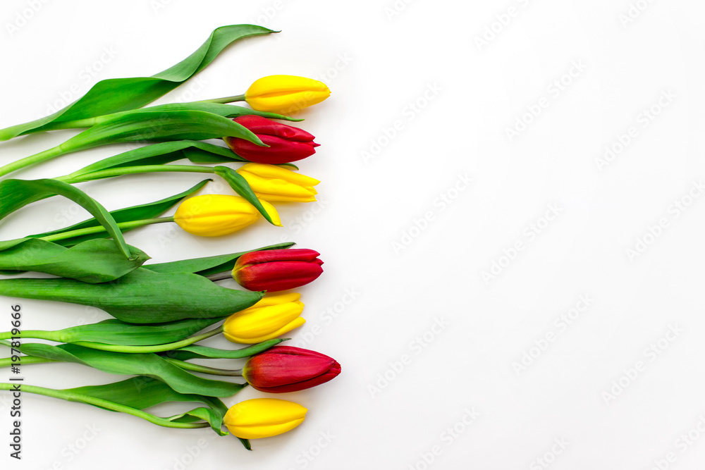 Bouquet Of Yellow And Red Tulips Arranged On Wallpaper Mural - Decorly Solutions | Decorly Solutions