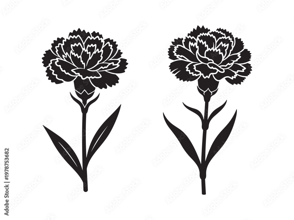 Two Carnation Flower Silhouettes With Carnation Silhouette Botanical Wallpaper Mural - Decorly Solutions | Decorly Solutions