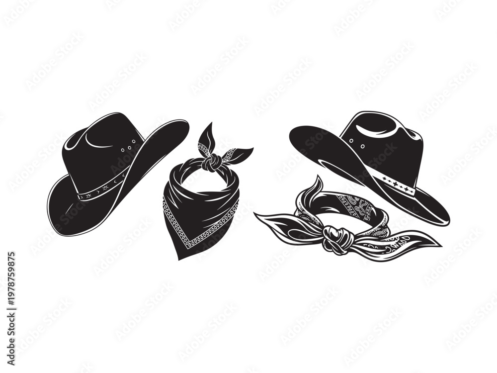 Cowboy hats and bandanas in black silhouette with silhouette Wallpaper