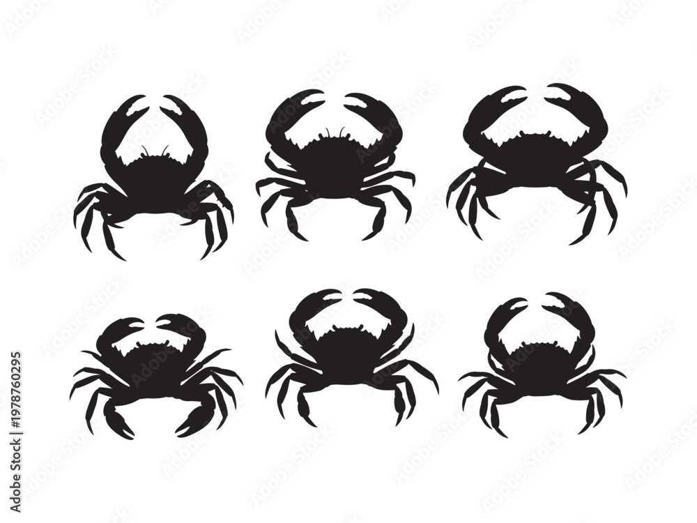 Set Of Six Black Silhouette Illustrations Of Crabs Wallpaper Mural - Decorly Solutions | Decorly Solutions