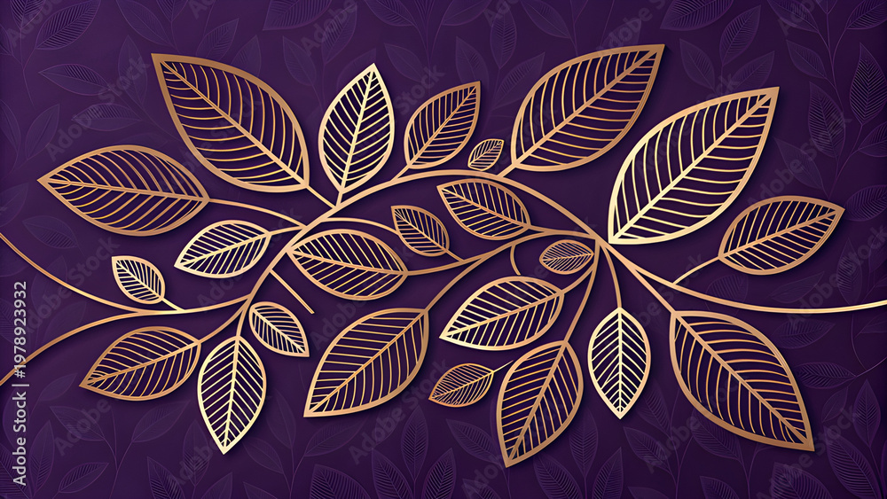 Modern Abstract Geometric Leaf Pattern On Dark Purple Wallpaper Mural - Decorly Solutions | Decorly Solutions
