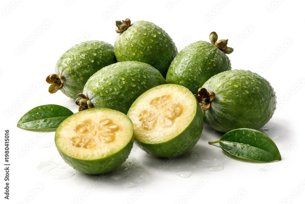 Fresh Feijoa Fruits Isolated On A Clean White Wallpaper Mural - Decorly Solutions | Decorly Solutions