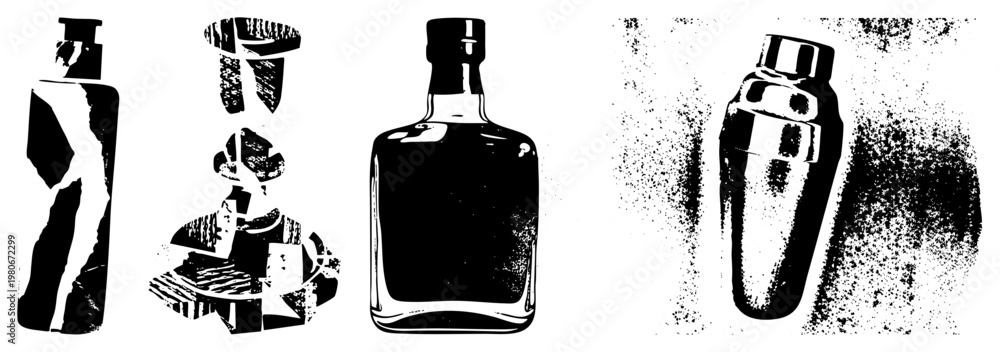 Retro Liquor Bottles Cocktail Shaker Barware Collection Halftone Wallpaper Mural - Decorly Solutions | Decorly Solutions