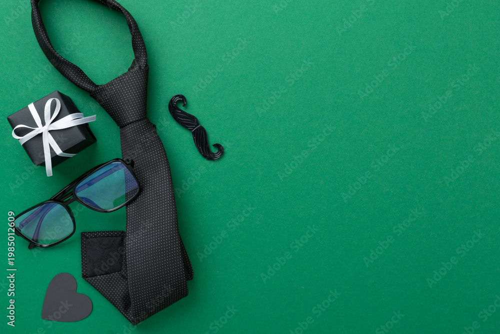 Stylish Handkerchief, Bag And Other Accessories On Dark Green Background, Flat Lay