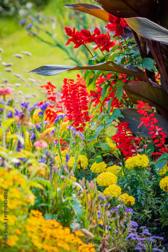Colorful garden blooms vibrate under the sun creating a radi Wallpaper