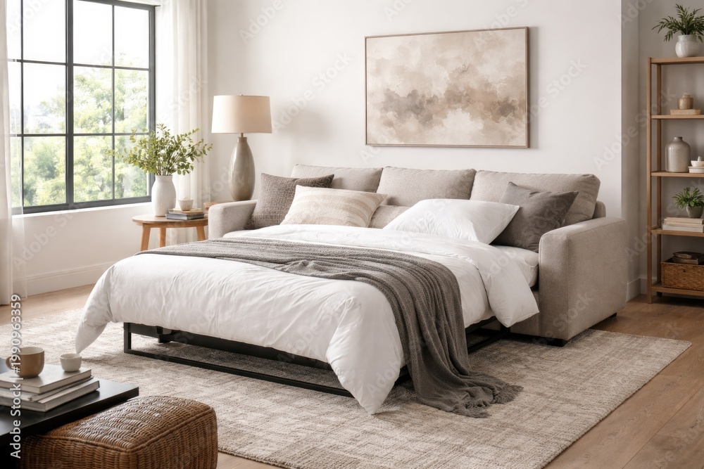Contemporary living space featuring a sleeper sofa near a br Wallpaper