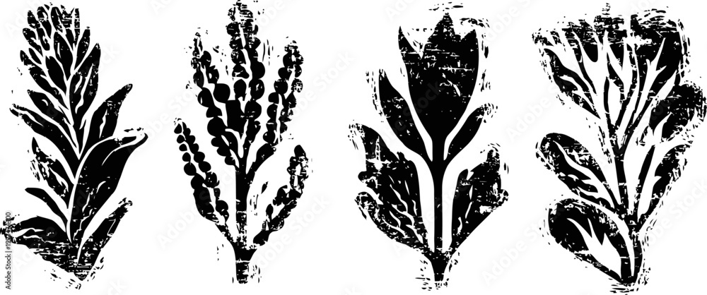 Black Botanical Leaf Silhouettes On White Background With Wallpaper Mural - Decorly Solutions | Decorly Solutions