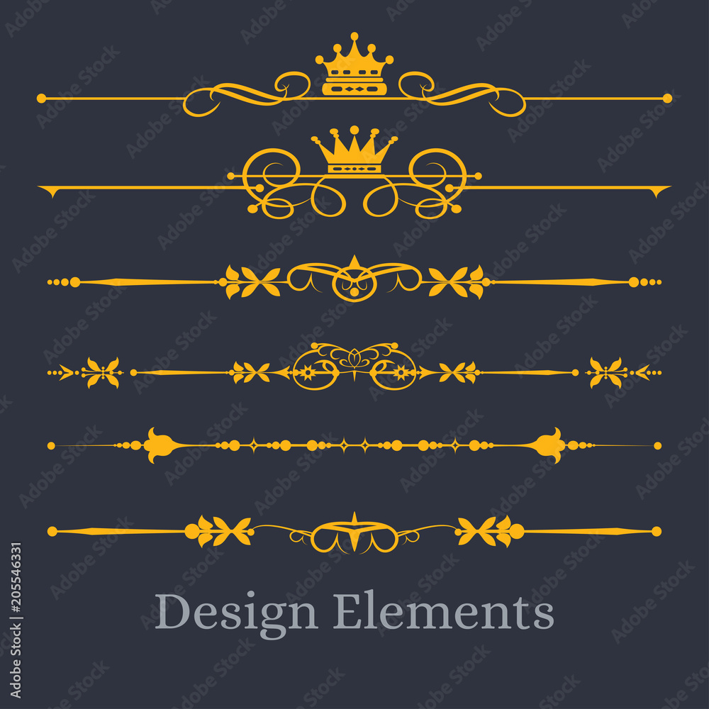 Design elements. Gold on black. Vector