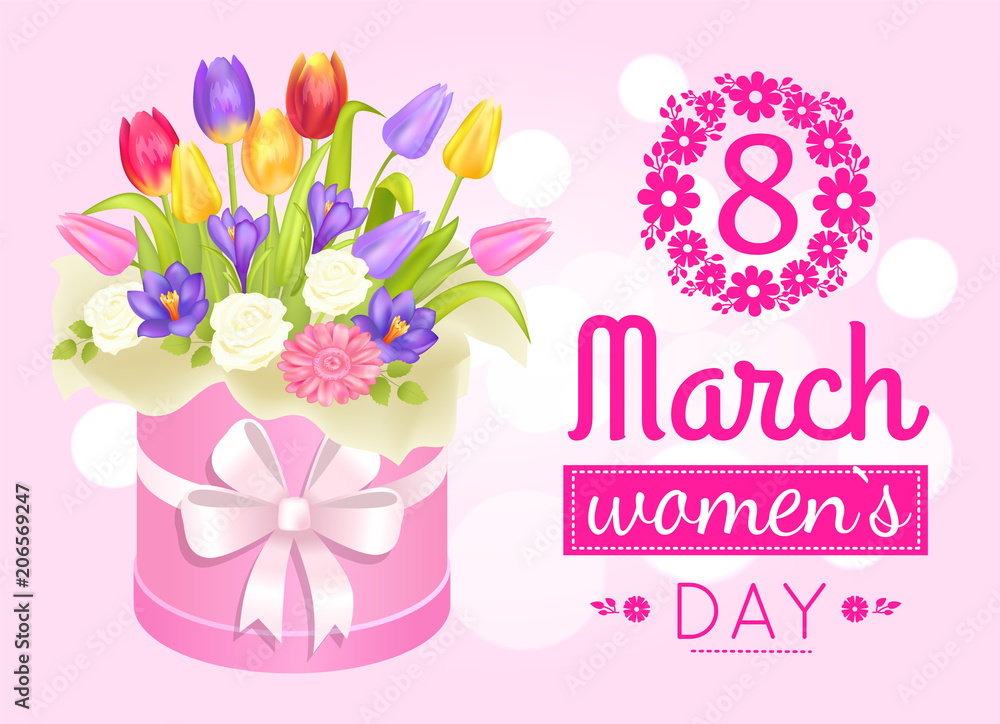 8 March Womens Day Poster With Realistic Bouquet Wallpaper Mural - Decorly Solutions | Decorly Solutions