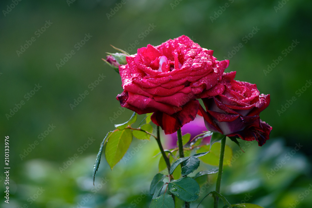 Beautiful Branch Of A Red Bush Rose With Wallpaper Mural - Decorly Solutions | Decorly Solutions