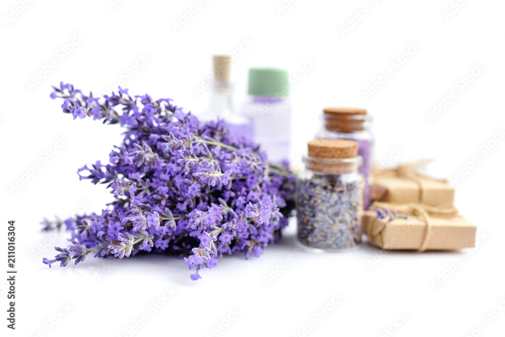 Spa Products And Lavender Flowers On A White Wallpaper Mural - Decorly Solutions | Decorly Solutions