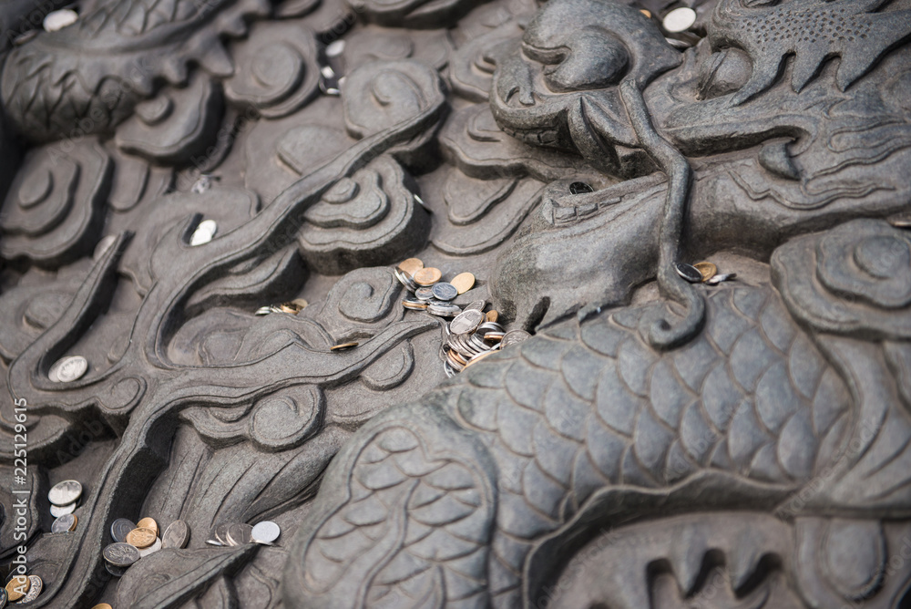 Old Dragon Sculpture With Many Coins To Prepare Wallpaper Mural - Decorly Solutions | Decorly Solutions