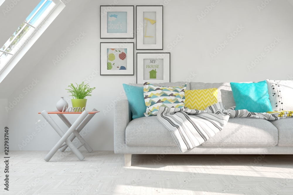 Idea Of White Minimalist Room With Sofa Scandinavian Wallpaper Mural - Decorly Solutions | Decorly Solutions