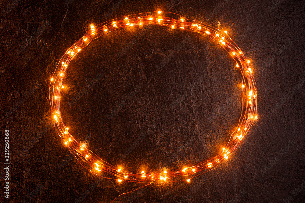 Oval Frame Of Christmas Lights On The Black Wallpaper Mural - Decorly Solutions | Decorly Solutions