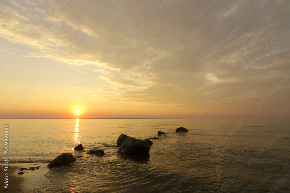 Golden Waters: Two Silhouettes at Sunset, Embracing the Happycore and Dutch Marine Scene Vibes