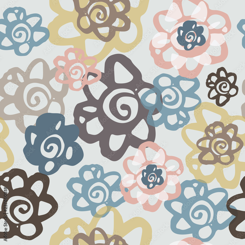 Cute And Quirky Hand Drawn Floral In Pastel Wallpaper Mural - Decorly Solutions | Decorly Solutions