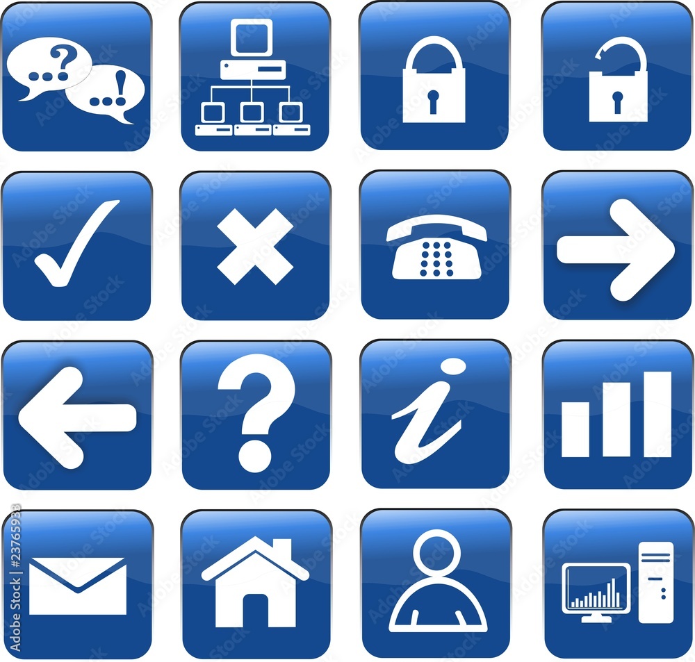 A colorful collection of flat web and app interface icons including login, logout, padlock, tag, alert, refresh, upload, and user for UI design and interaction.