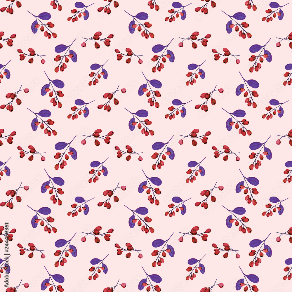 Berries Seamless Pattern -1 Pink And Purple Wallpaper Mural - Decorly Solutions | Decorly Solutions