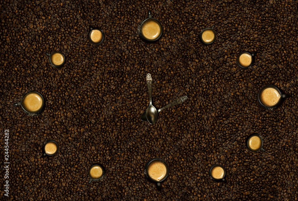 Hours From Black Mugs Of Coffee With On Wallpaper Mural - Decorly Solutions | Decorly Solutions