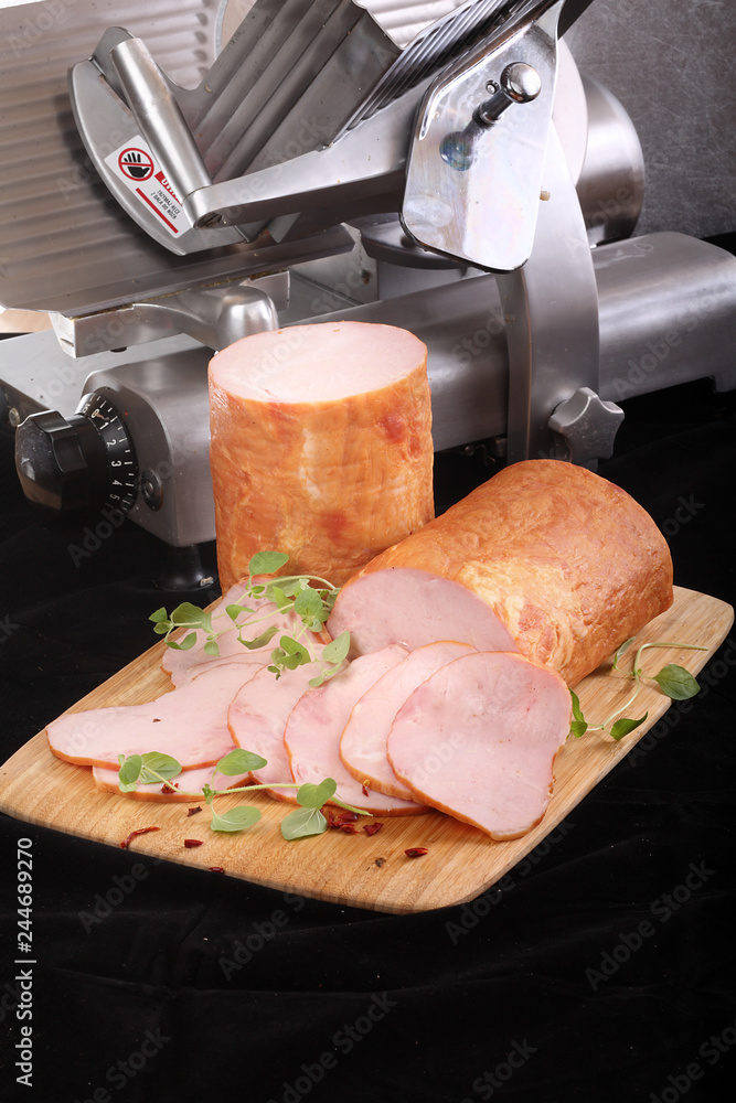 Szynka. Plasterki szynki wieprzowej na białym tle