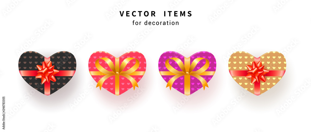 Set Of Heart Shaped Gift Box With Bow Wallpaper Mural - Decorly Solutions | Decorly Solutions