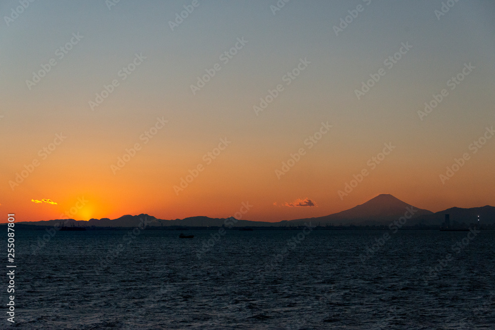 Sunset Beyond Mount Fuji From Tokyo Bay Aqua-line Wallpaper Mural - Decorly Solutions | Decorly Solutions