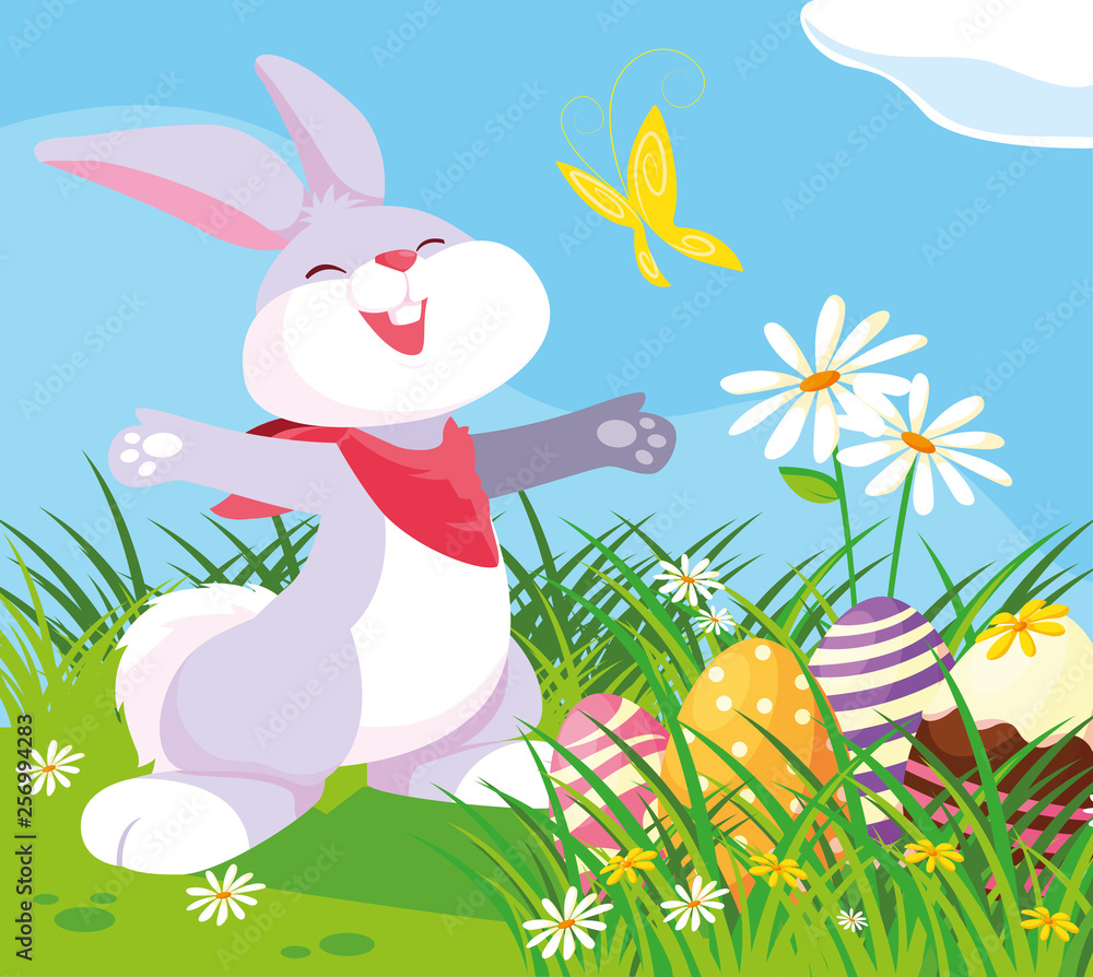 Cute Rabbit With Eggs Of Easter In Garden Wallpaper Mural - Decorly Solutions | Decorly Solutions