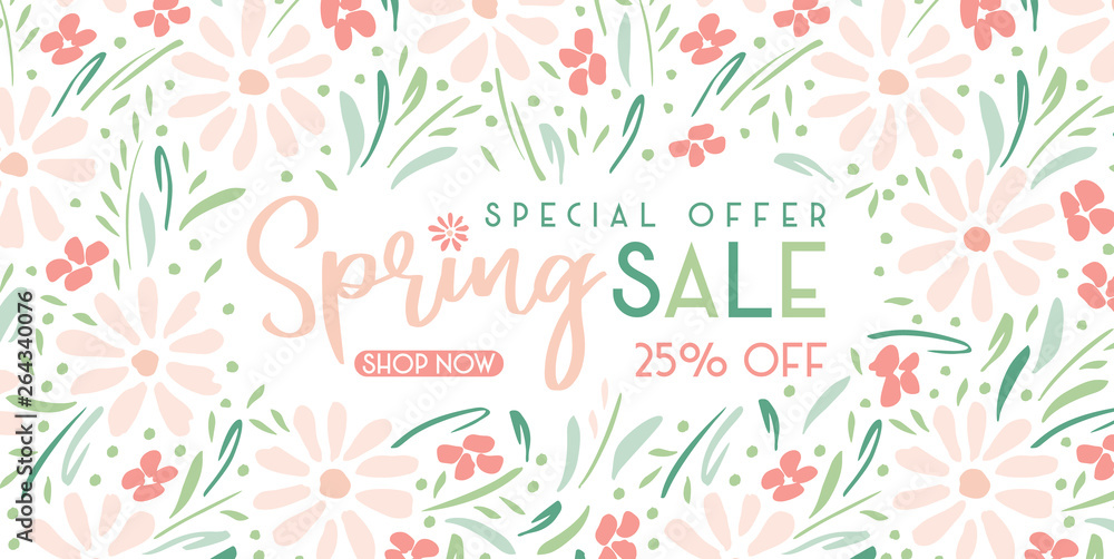 Elegant Hand-Painted Spring Sale Promotion Horizontal Banner Wallpaper