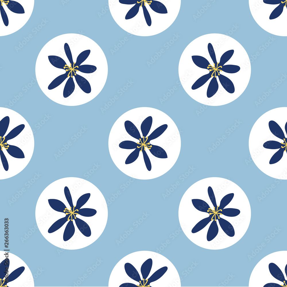 Cute Floral Dot Seamless Pattern In Blue And Wallpaper Mural - Decorly Solutions | Decorly Solutions