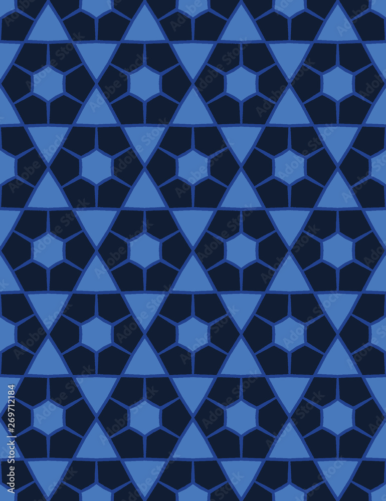 Indigo Blue Mosaic Tile Shapes Vector Pattern Seamless Wallpaper Mural - Decorly Solutions | Decorly Solutions