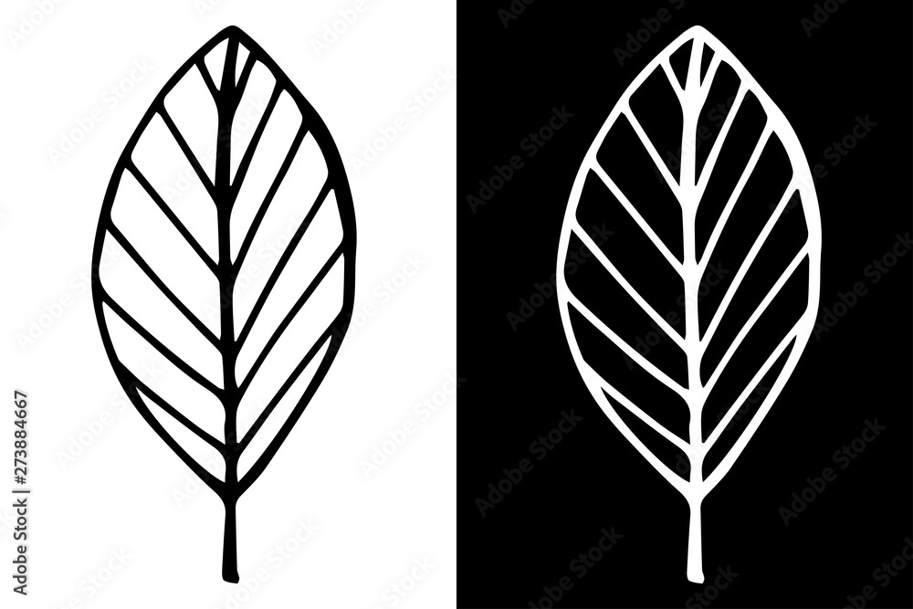 Three leaf line art illustrations, isolated, white background, design element