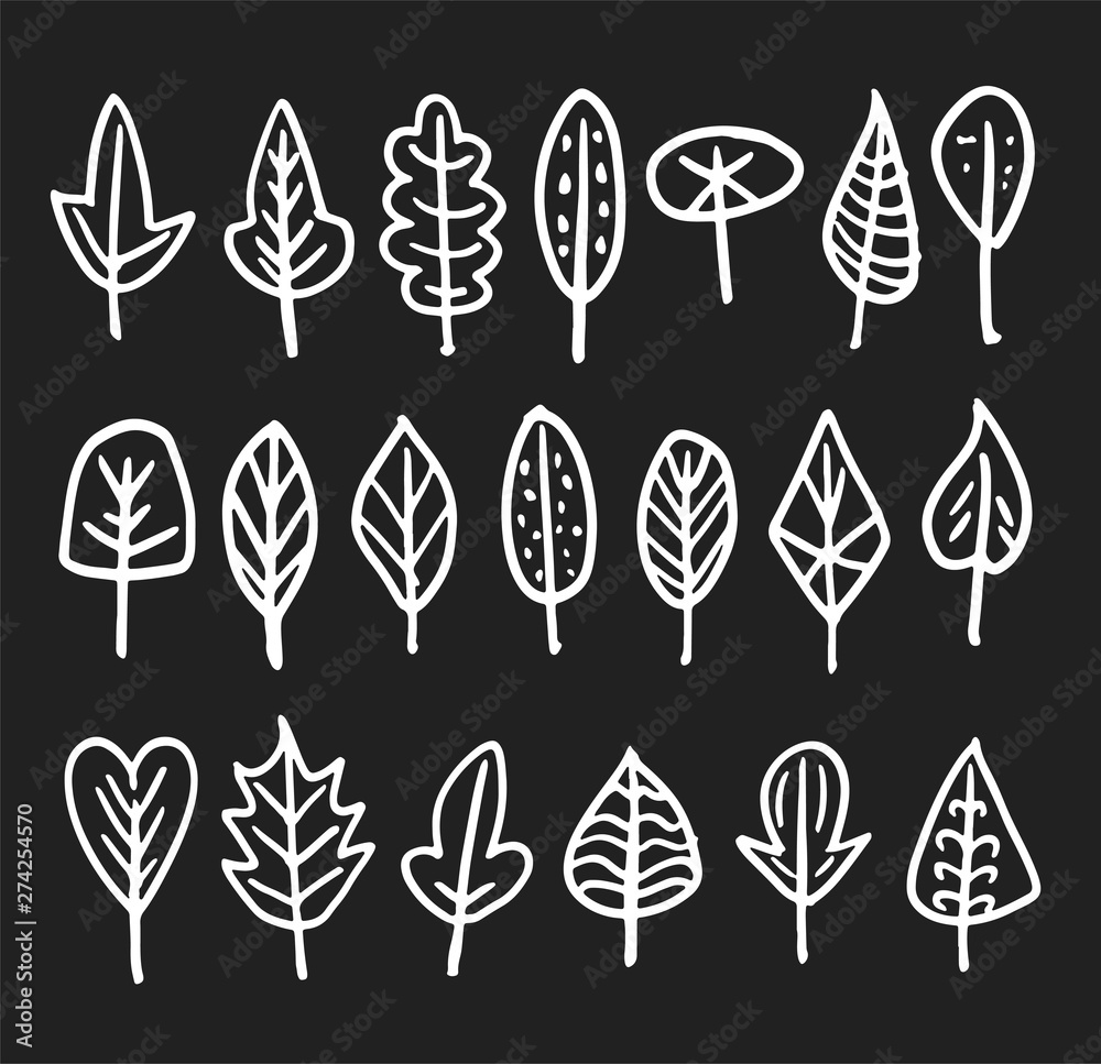 Set Of Doodle White Leaves Wallpaper Mural - Decorly Solutions | Decorly Solutions