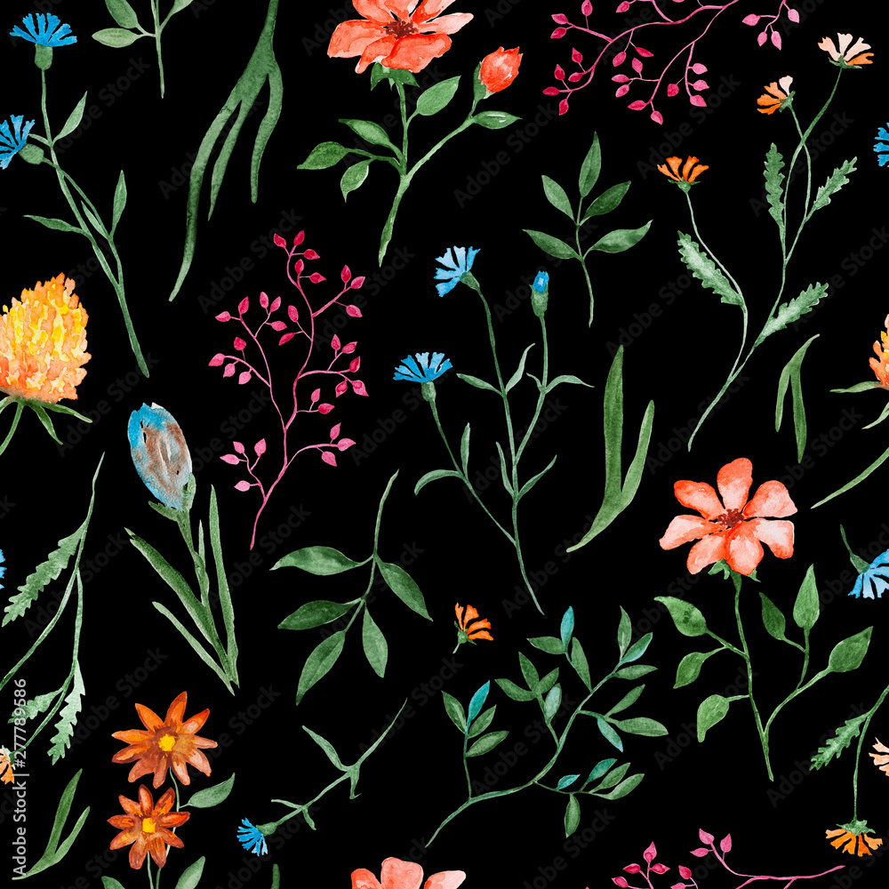 Different Flowers Watercolor Painting - Hand Drawn Seamless Wallpaper Mural - Decorly Solutions | Decorly Solutions