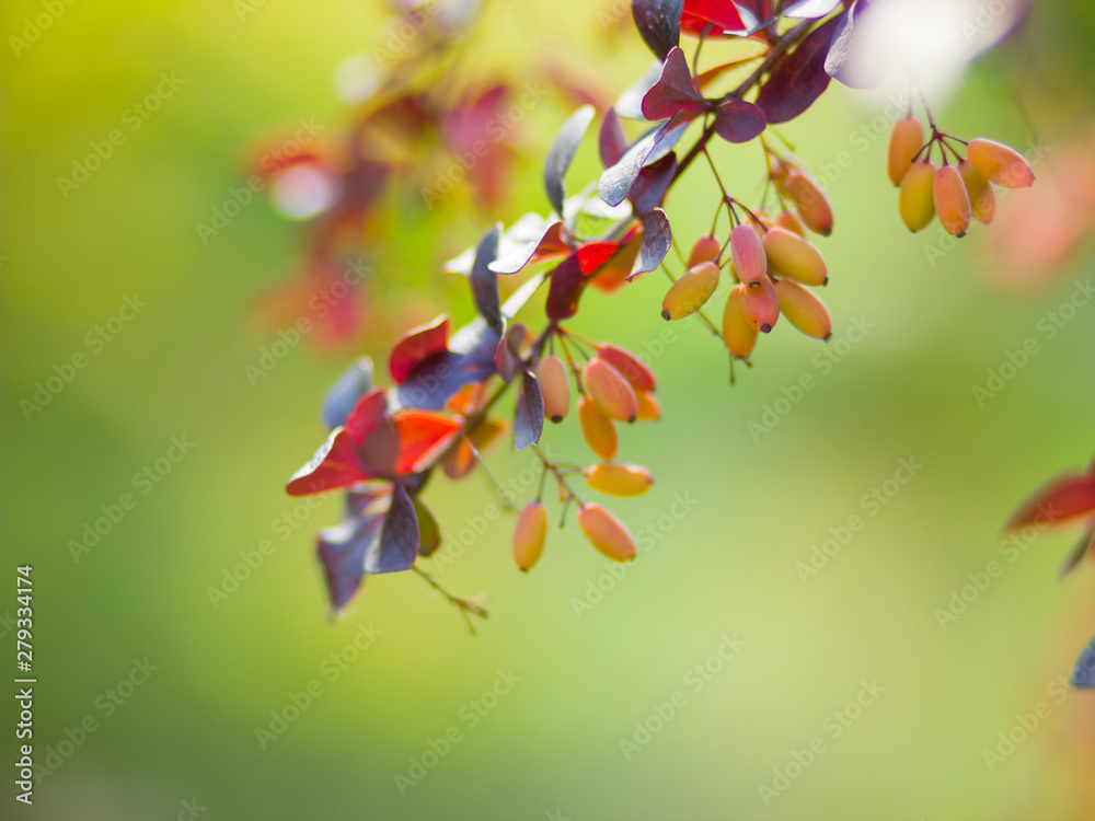 Barberry Fruits Ripening On The Branch Branch With Wallpaper Mural - Decorly Solutions | Decorly Solutions