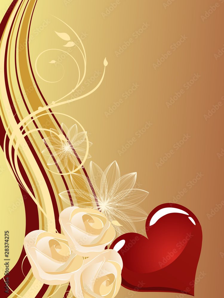 Minimalist Valentine’s Day Golden light, fluid colors inscription with a single red rose, gold accents